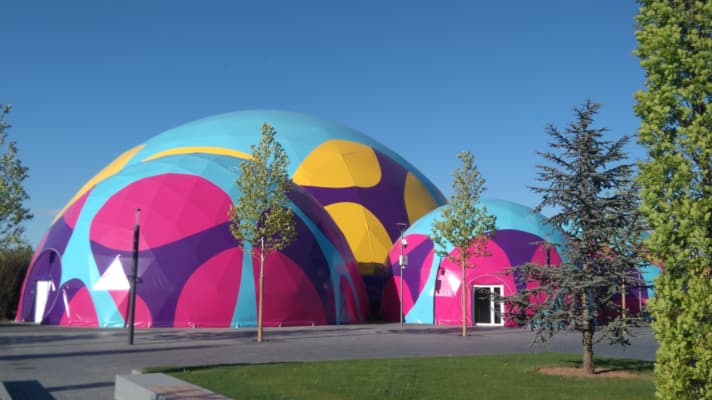 A 50m mobile dome with a 24-channel dome projection delivered by 4x Wings RAW uncompressed servers running 6000×6000 pixels content @ 50Hz.