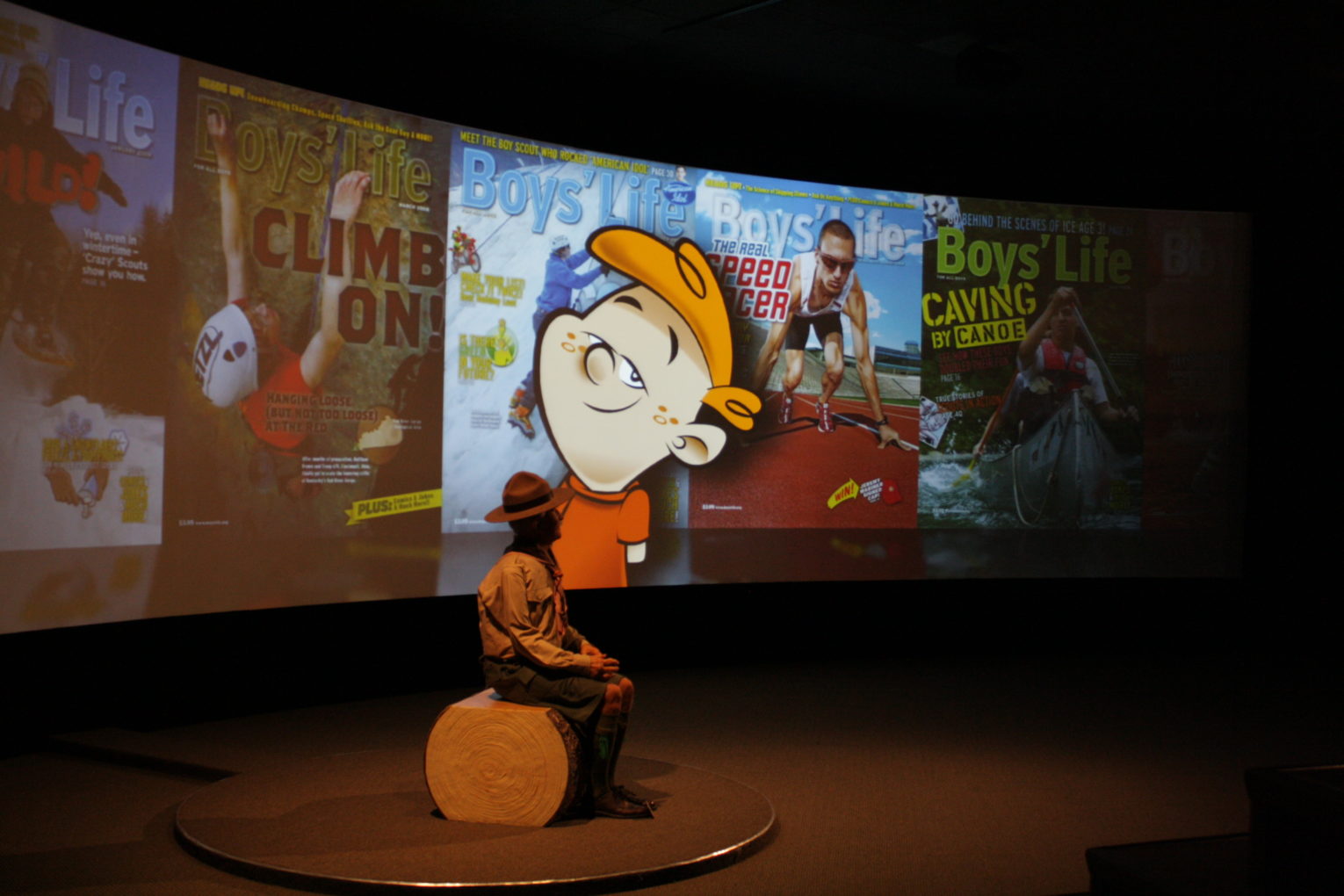 The Boy Scouts of America National Scouting Museum in Irvine, TX called to Zanim8tion once again for an interactive theater featuring the founder Lord Baden Powell. Guests are welcomed in the self-serviced theater to press a button on the entryway wall. Once activated the guests then sit and watch as the lights dim and spotlight the sophisticated Lord Baden Powell animatronic introduce them to the heritage of the Boy Scouts of America. He is joined with a cartoon character on the large, 55’, 3 projector blended screen, who transports Lord Powell to the video. The 18 minute video takes the guests through the many passages of a modern Boy Scout including adventures across the nation.