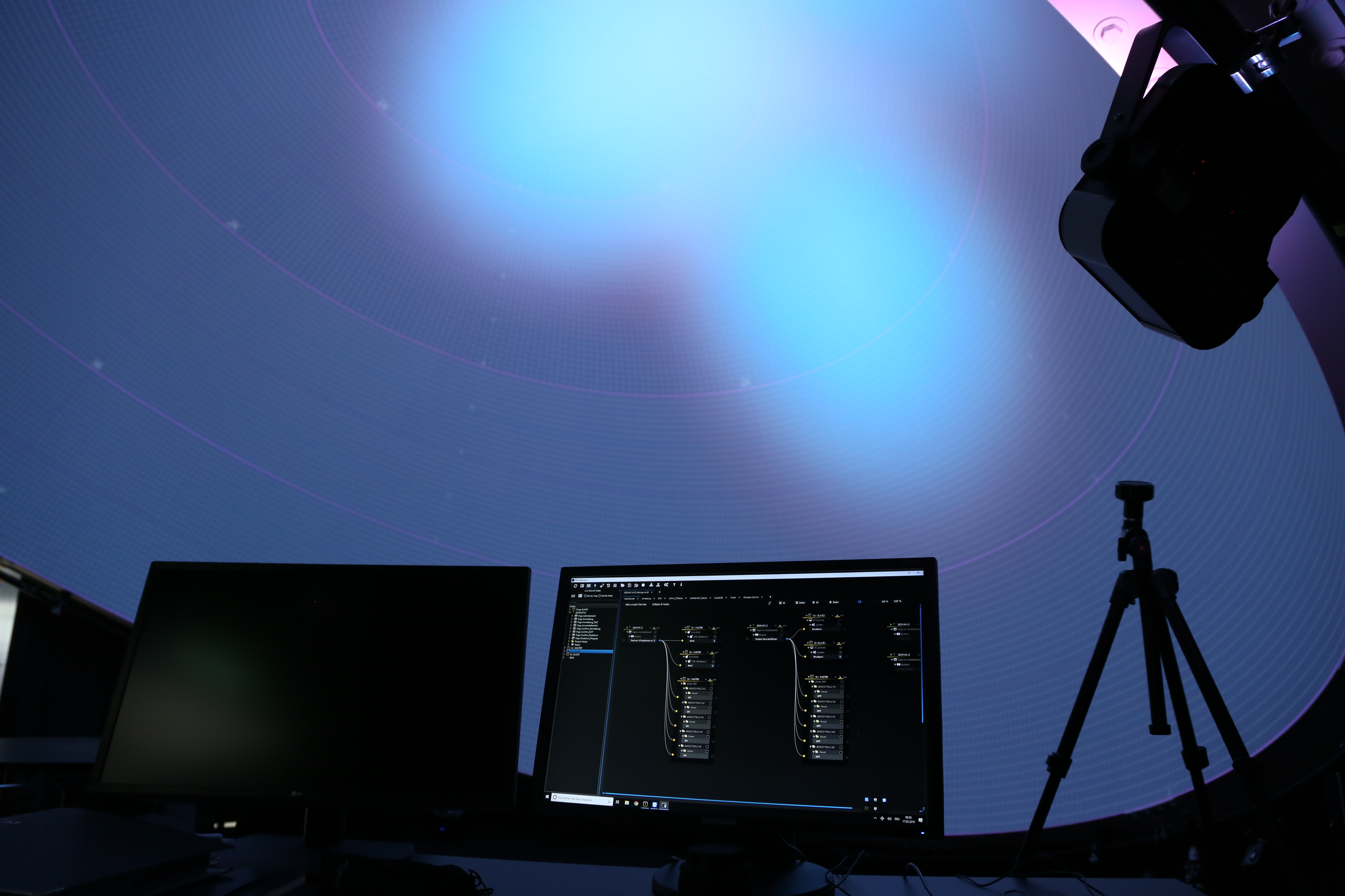 Every aspect of this installation – planning, delivery of screen, housing, trussing, projectors and system integration – was supported by us with our great knowledge in dome projections and was integrated by our partners.